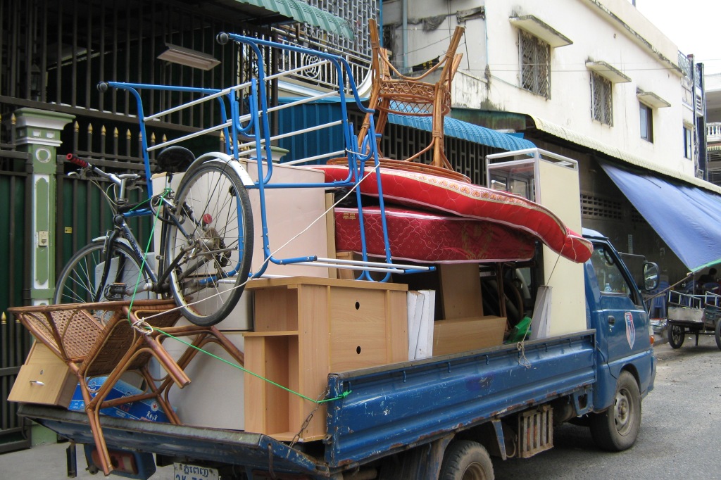 Hooray, I'm moved! No more 20 minute moto rides to or from school each day (more in peak hours). I can walk to school. The last two weeks have been somewhat hectic, but thanks to some great help from a very good friend, I'm happy to say the move was accomplished with no disasters. I was very grateful for the loan of a truck from the owner of our school, along with a driver, and the help of some of the guards/van assistants and our PE teaching assistant. It took two loads, but we were all done by 1pm. I then took all my helpers that I could out for lunch, which they really enjoyed, and gave them a small (by Australian standards) cash payment for their help. They all walked away with big smiles on their faces. Here are a few snaps of the second truckload. I will admit that "Yes, I have a lot of stuff!".